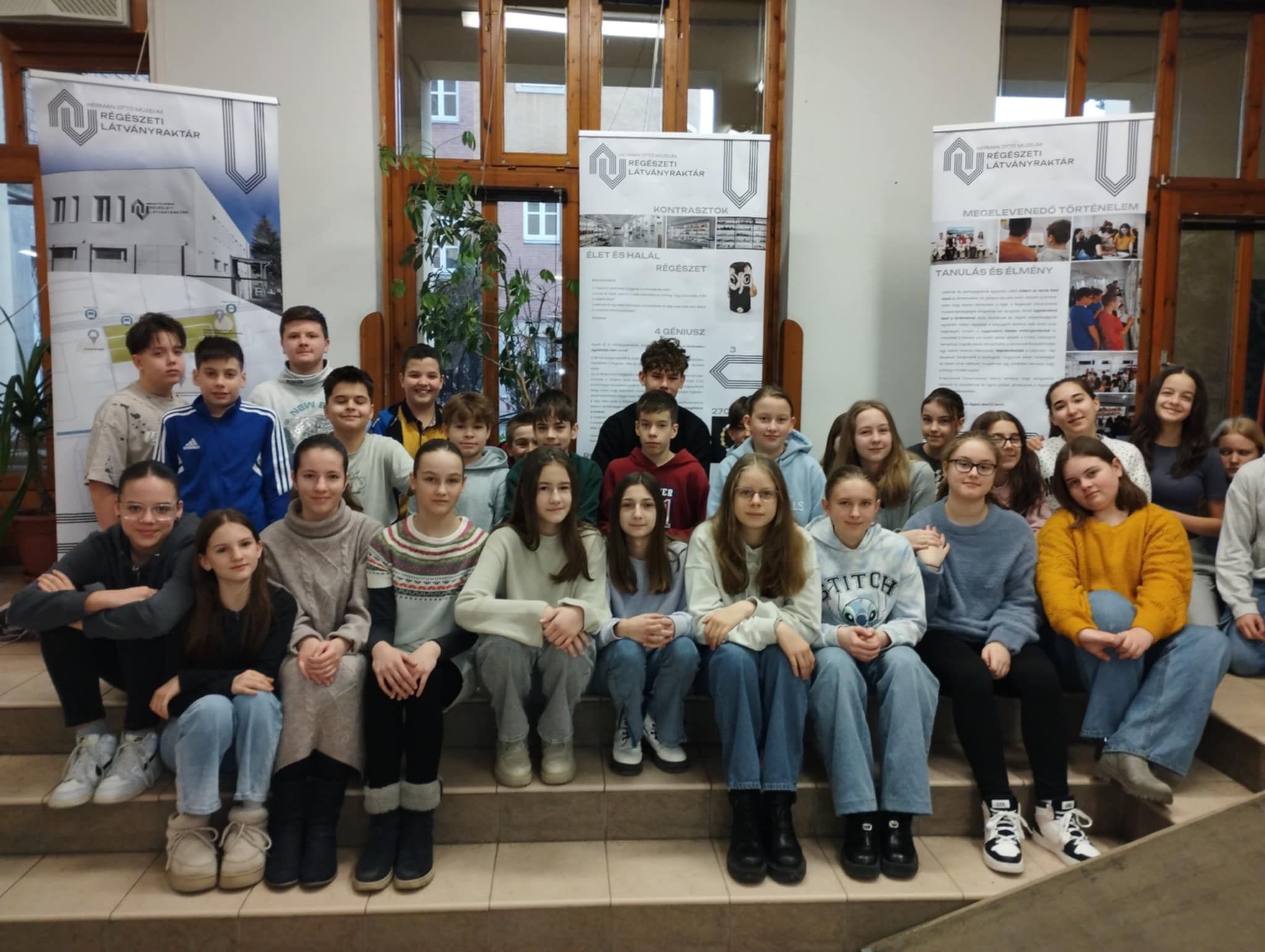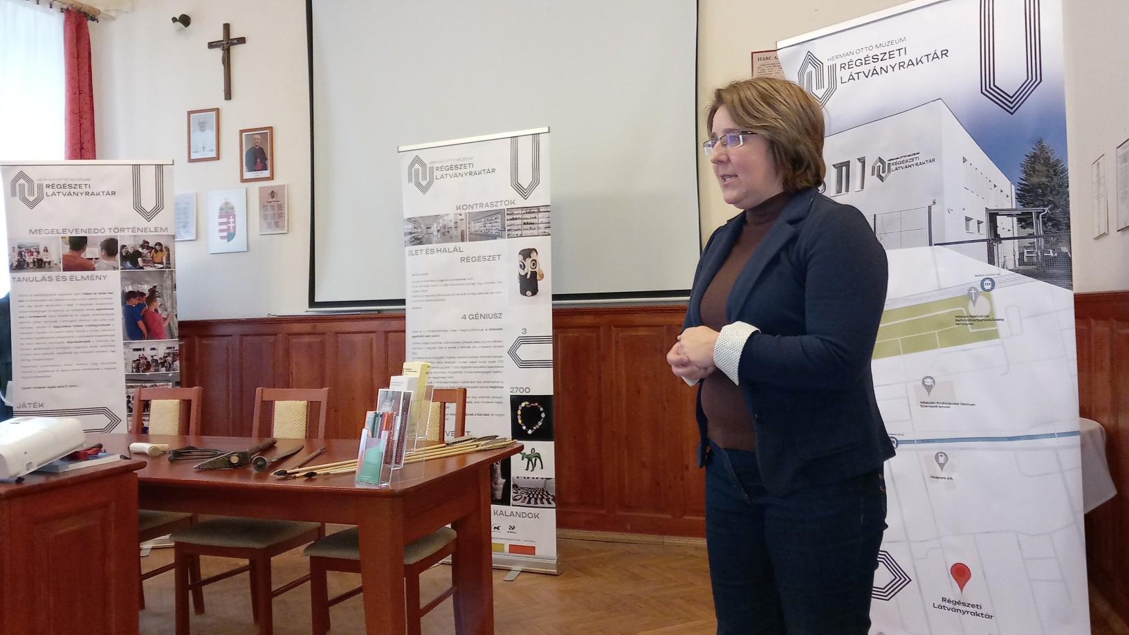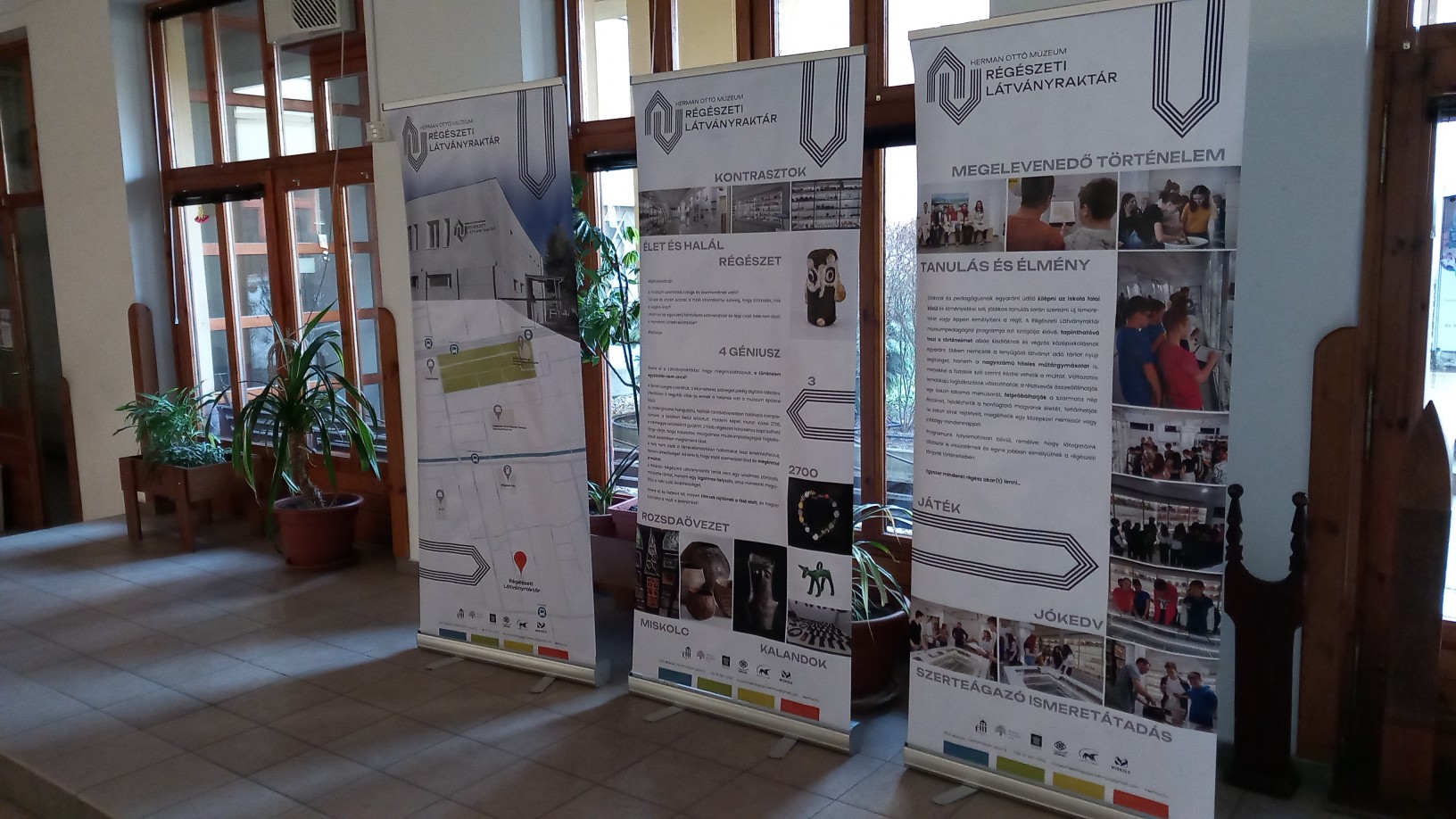 Február 24-én iskolánkban járt a Herman Ottó Múzeum két munkatársa, hogy humán munkaközösségünk tagjaival megismertessék a Régészeti Látványraktár kínálta lehetőségeket. Czárné Kovács Eszter múzeumpedagógus ismertetője után egy héten át nálunk maradhatott a Látványraktárhoz kapcsolódó 3 roll-up, melyet diákjaink is megtekinthettek az aulában, hogy kedvet kapjanak a helyszín felkeresésére. Intézményünk 6.b osztályos tanulói Baloghné Szabó Erika és Szeitzné Viski Erika kolléganőkkel már jártak az idei évben ott, így ők különösen is örülhettek, hogy látva a kiállított anyagot, felidézhették közös élményeiket.