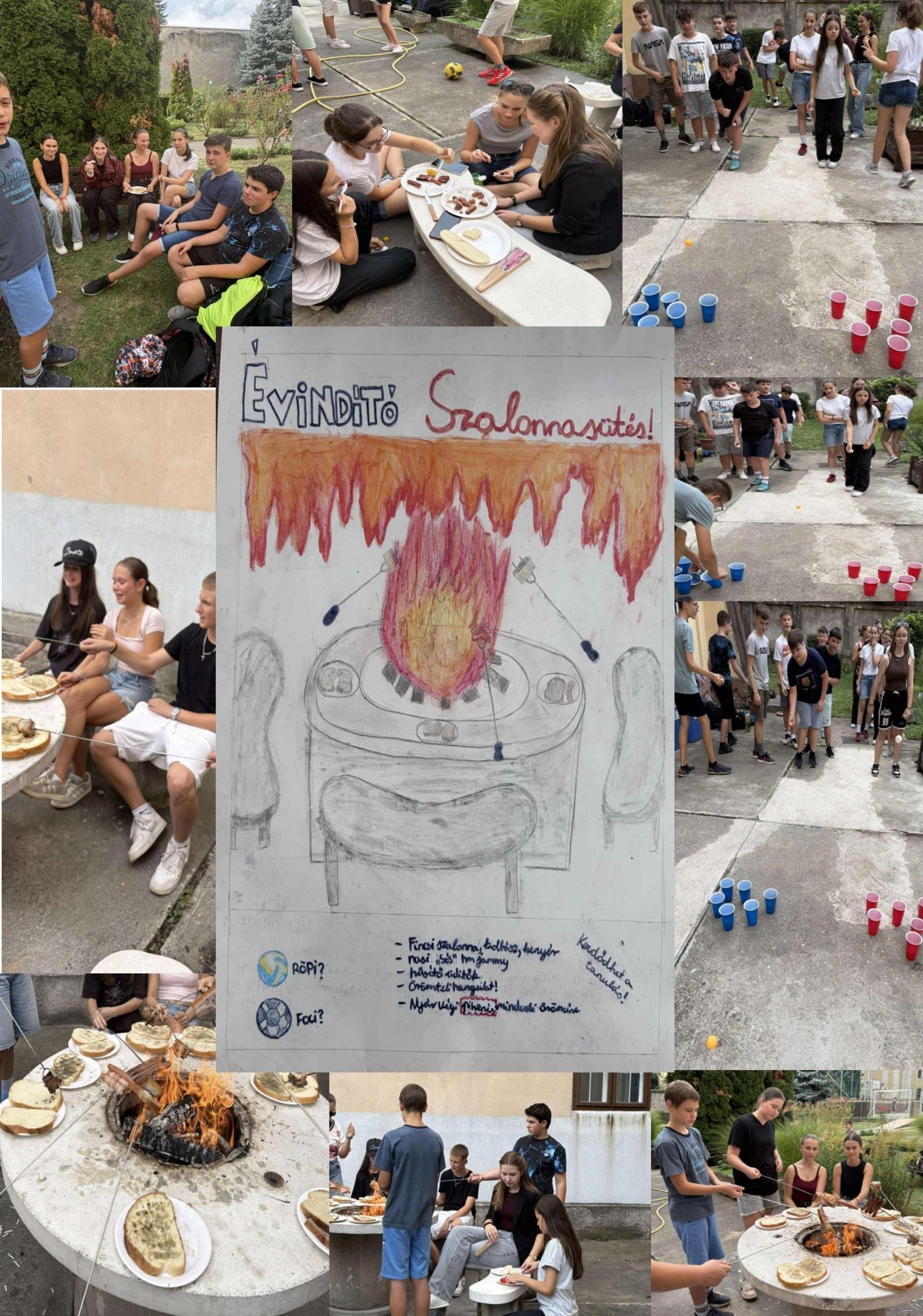 Az iskola udvarán tartottuk meg az idei tanévnyitó szalonnasütésünket - ahol mi, a 8.a osztály diákjai - egy vidám délutánt töltöttünk együtt. A szép idő remek hangulatot teremtett, mindenki jókedvűen sütögetett, játszott, beszélgetett. A közös élmények, a sok nevetés és móka igazi közösségi élménnyé tették a programot, amely méltó kezdete lett az új tanévnek.