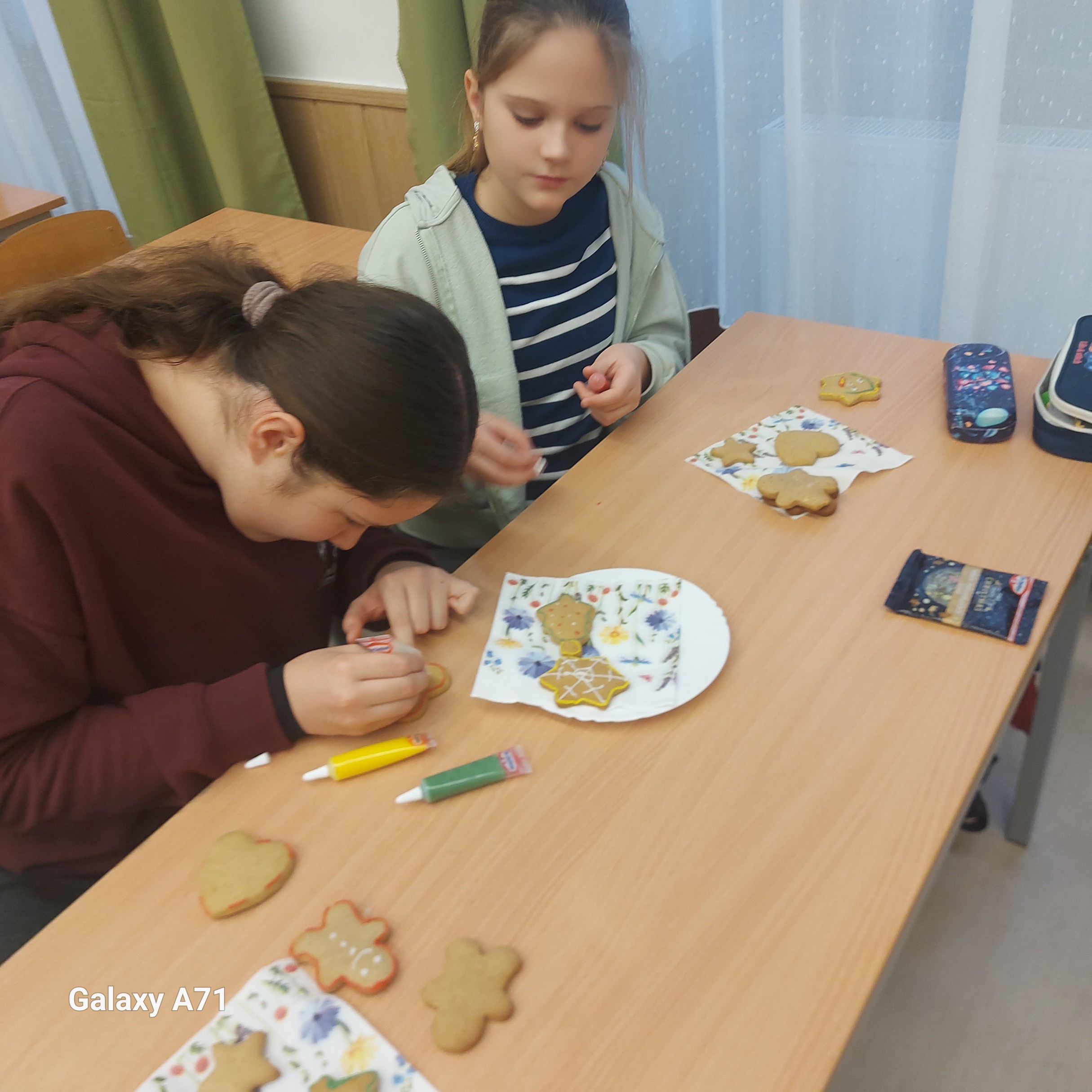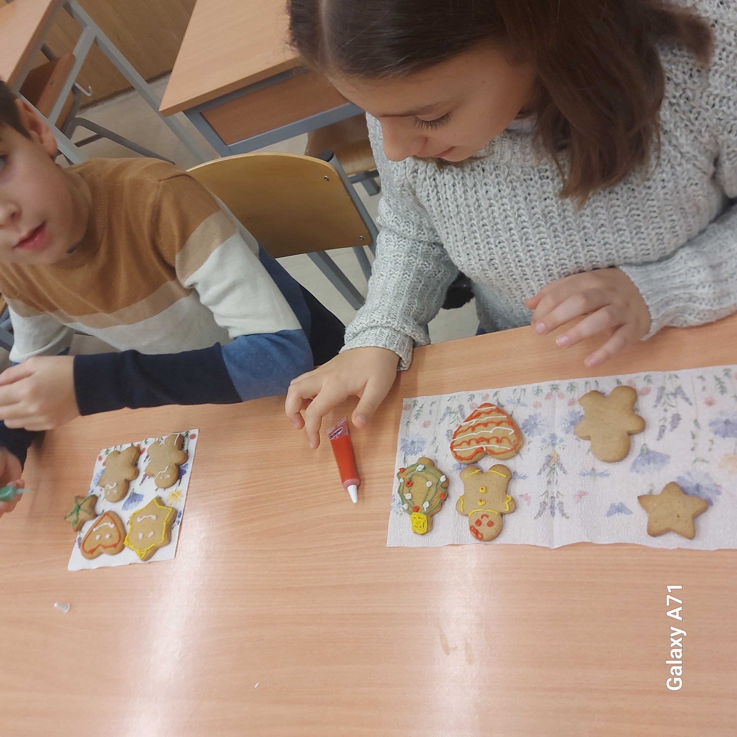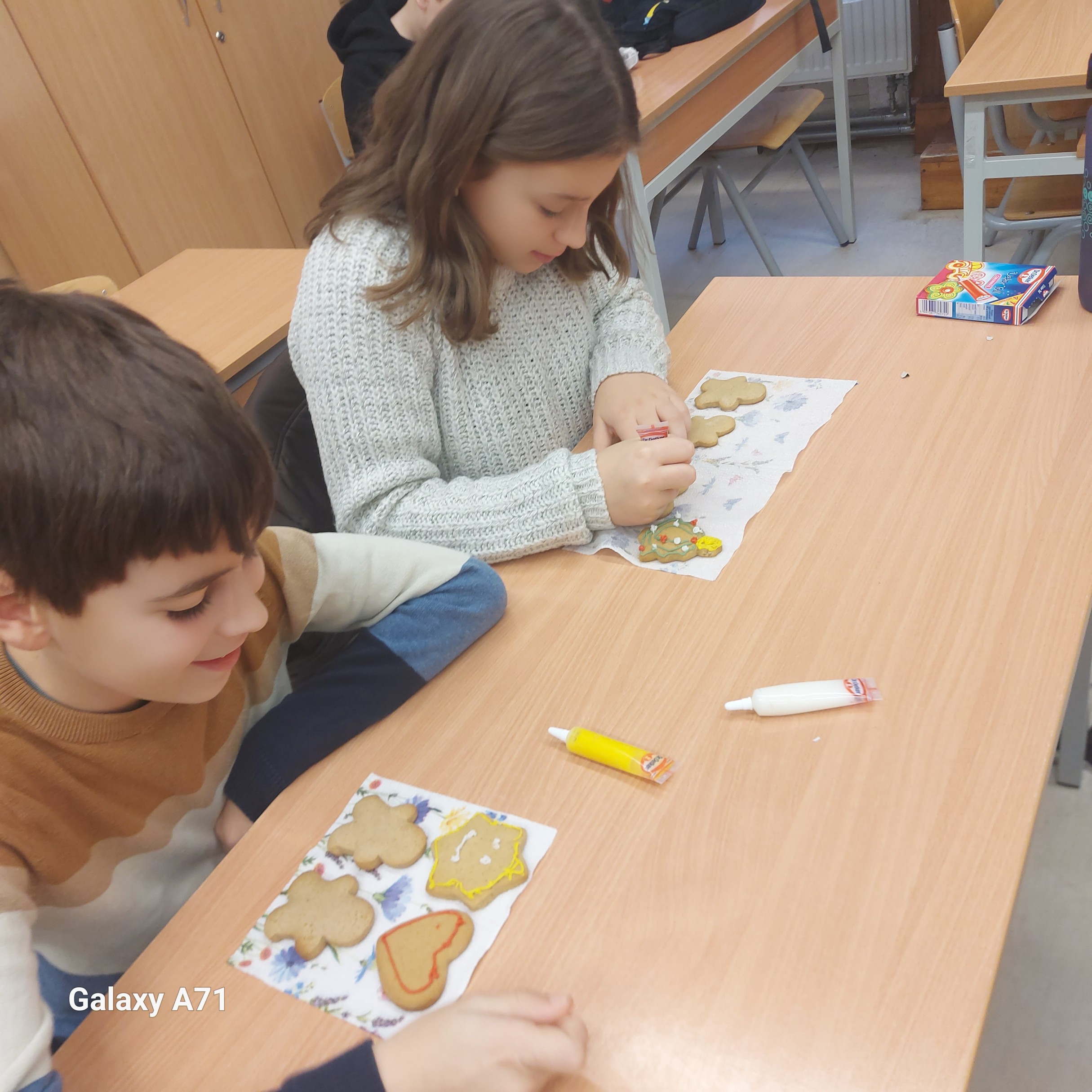 Mézeskalács on 2025. december 08.. Az 5.b osztály a mai napon mézeskalács díszítéssel kezdte a napot. A gyerekek már nagyon készűlnek a karácsonyra!
