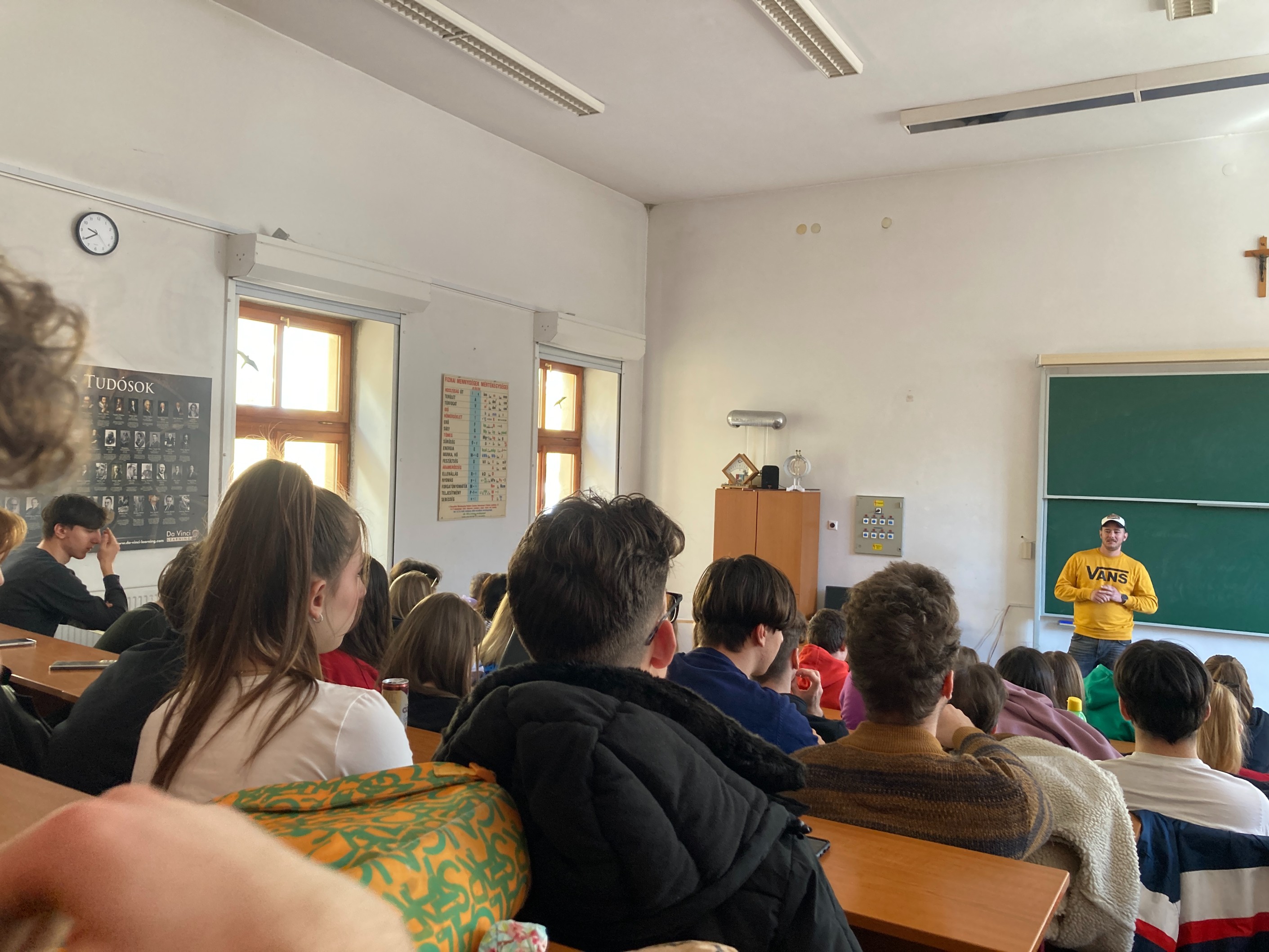 A gimnázium mindennapjaiba is bepillantást nyerhettünk. Egy érdekes kémia órai kísérlet és egy mélyen elgondolkodtató etika óra után szuveníreket vásárolhattunk az iskola világboltjában, ahol saját készítésű, illetve méltányos kereskedelemből származó termékeket árulnak a diákok. Az iskolában működő Miserior karitatív szervezetet is megismerhettük.
