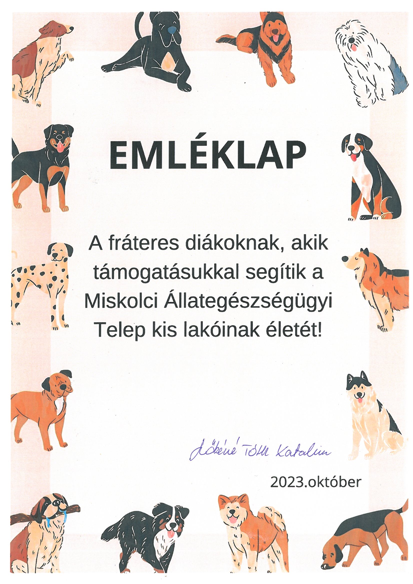 Intézményünk 5.a osztályos diákjai nyerték meg a Miskolci Állategészségügyi Telep számára meghirdetett gyűjtési akciót!