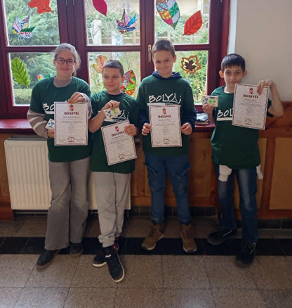 4. helyezést ért el Mészáros Izabella 5.B, Ádámcsó Fülöp 5.A, Kardos Zétény 5.B, Nagy László 5.A. Felkészítő tanár Kozma Emese.