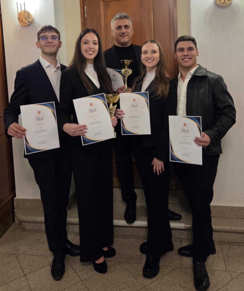Végh Alexandra 10. A és Kocsis Karola 11. C osztályos tanulók a Ködmön Formációs Táncegyüttes tagjaiként a 2025.évben nyújtott kiváló sportteljesítményükért elismerésben részesültek.
