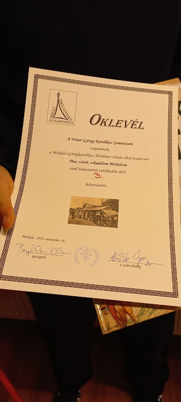 Az idei tanévben kb.1500 diák indult a Görögkatolikus Tudásolimpia elnevezésű tehetséggondozó versenyen. Diákjaink, akik két fordulóból továbbjutottak, május 26-án vettek részt a nyíregyházi Szent Atanáz Görögkatolikus Főiskolán rendezett döntőn.