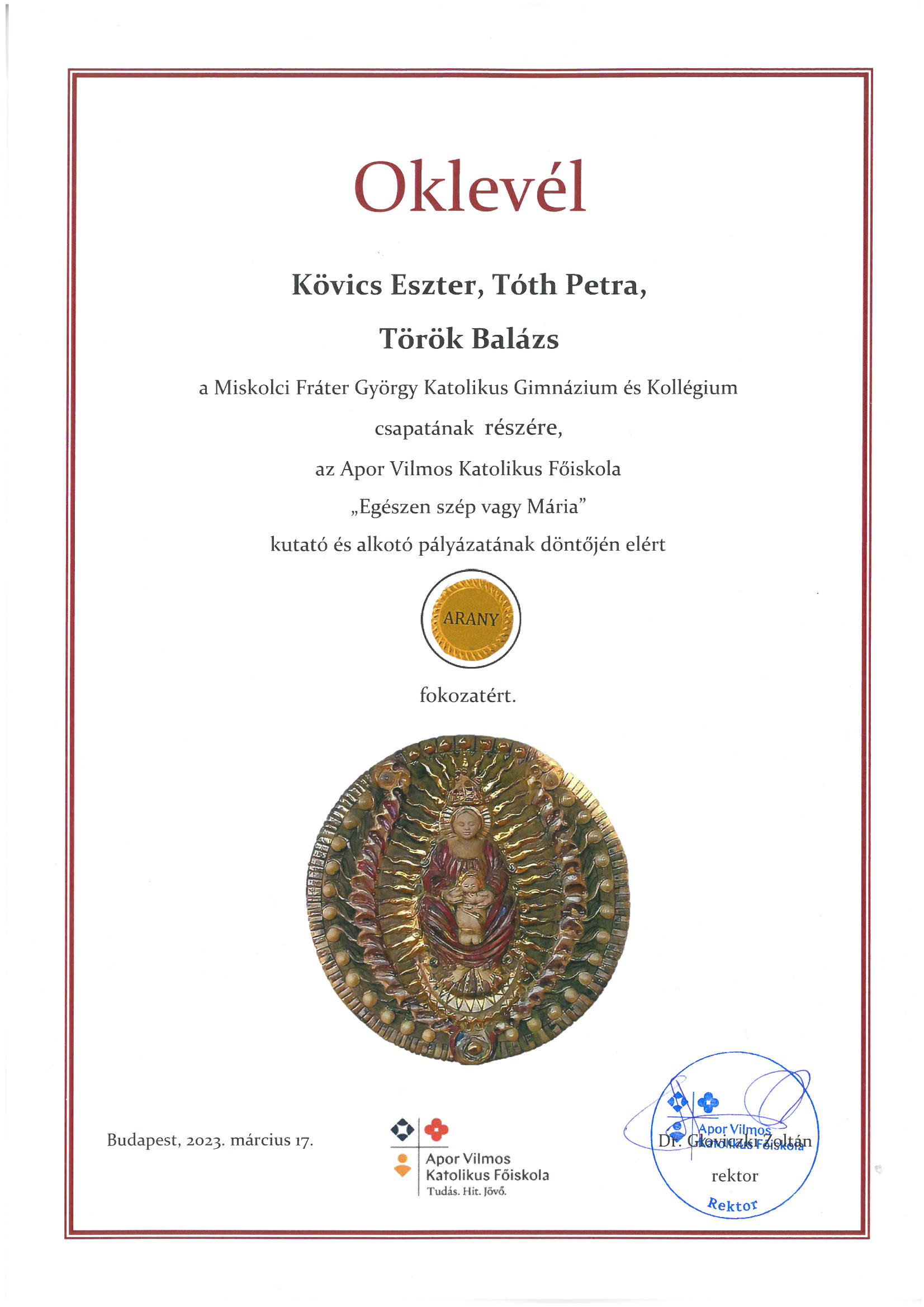 A döntőben (2023. április 25-én) számos kreatív és tudást felmérő feladat, hungarikumkóstoló, porcelánfestő foglalkozás után örömmel fogadtuk a hírt: csapatunk vármegyei I.helyezést ért el.