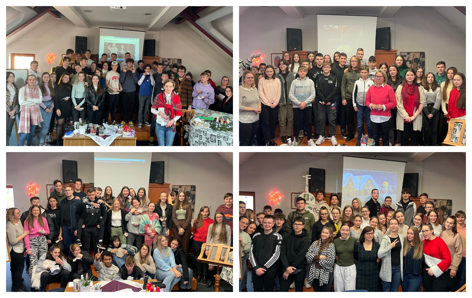 December 12-től 16-ig egy karácsonyi projektórán vettek részt azon diákjaink, akik a németet második idegen nyelvként tanulják. A program során volt éneklés, gyorsasági verseny, kirakó, szókereső, minden fantasztikus díjakért. Az óra végén csillagszóró fényében karácsonyi Stollen kóstolásával édesítettük meg az adventi várakozás perceit. De beszéljenek helyettünk a képek!
