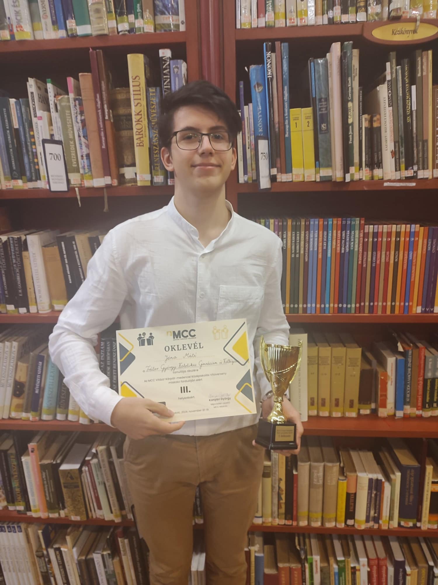 Jóna Máté 11.c osztályos tanuló az MCC Vitázz! Kárpát-medencei Középiskolás Vitaverseny miskolci fordulóján csapatával III. helyezést ért el, amivel bejutottak az országos döntőbe. Gratulálunk az elért eredményhez!