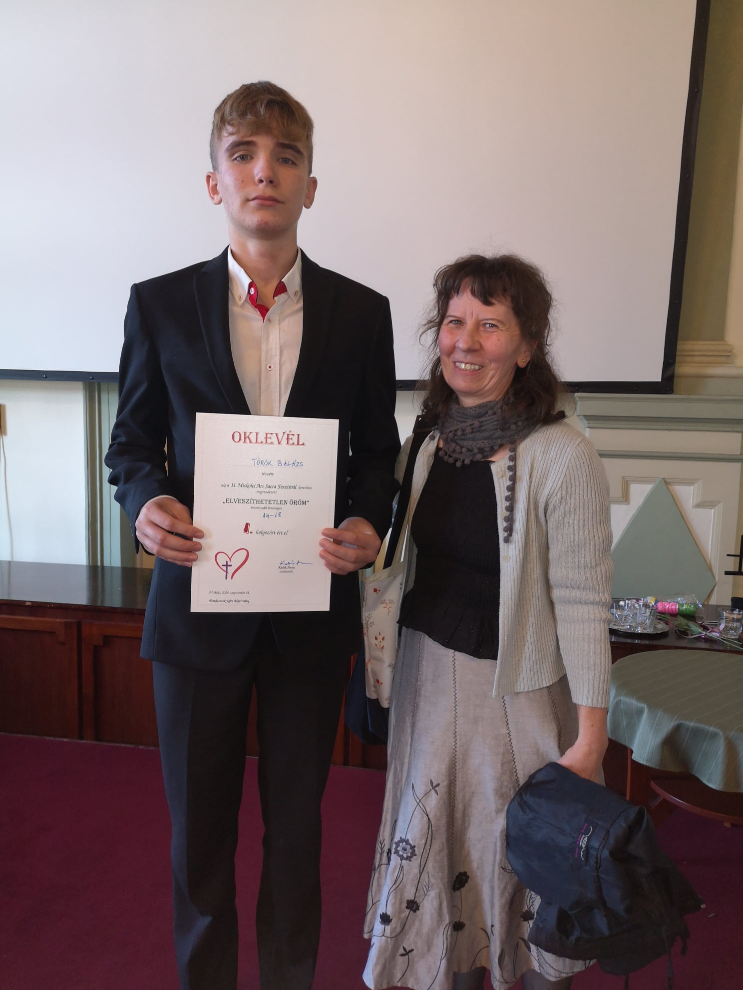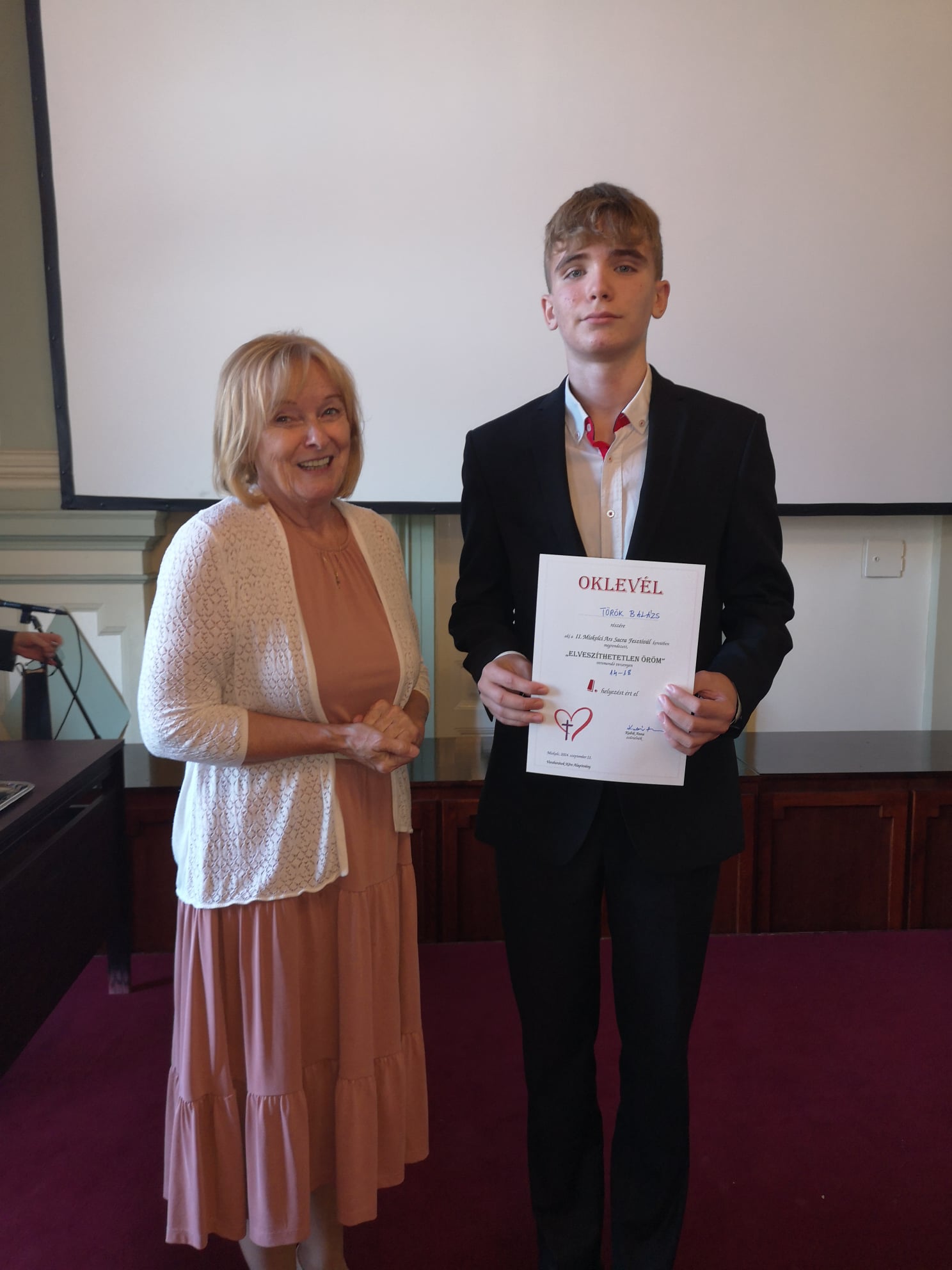 2024. szeptember 20-án rendezték meg az Ars Sacra Fesztivál keretében az "Elveszíthetetlen öröm" című szavalóverseny döntőjét, melyen Török Balázs 9. B osztályos tanuló vármegyei I. helyezést ért el.